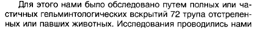 Попова (1929) видно, что "...для полного гельминтологического вскрытия таких крупных объектов, как лошадь, – одному человеку требуется затратить времени более одного месяца, для крупного рогатого скота – около трех недель, для овцы – более недели...".