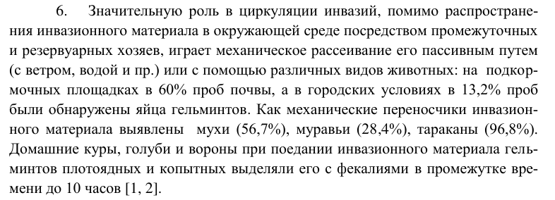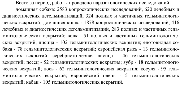 6) Диссертант выполнял полные гельминтологические вскрытия по Скрябину, но не указал их количество.