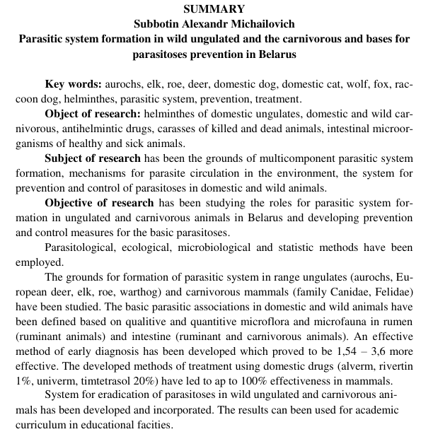 4. Получив образование ветеринарного врача и экономиста, Субботин продолжил образование в Витебской ветеринарной академии в аспирантуре на кафедре паразитологии. Которую закончил в 2002-ом году. Я не могу найти его кандидатскую диссертацию, но скорее всего она была связана с паразитарными болезнями собак.